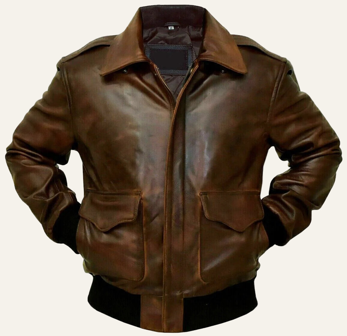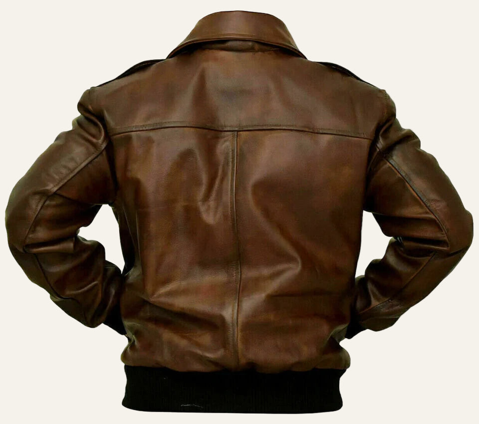 Experience timeless style and lasting comfort with the Wingman Aviator Jacket. Crafted from premium soft real sheep leather, its distressed brown finish offers a classic, worn-in appeal. Designed for warmth, it features a front zip closure, soft polyester lining, and microfiber insulation foam. Practicality meets style with three inner pockets, including a mobile pocket. Washed and waxed for an authentic antique look, this jacket is reinforced with high-quality stitching to ensure durability. Perfect for those seeking rugged elegance and reliable protection from the cold.